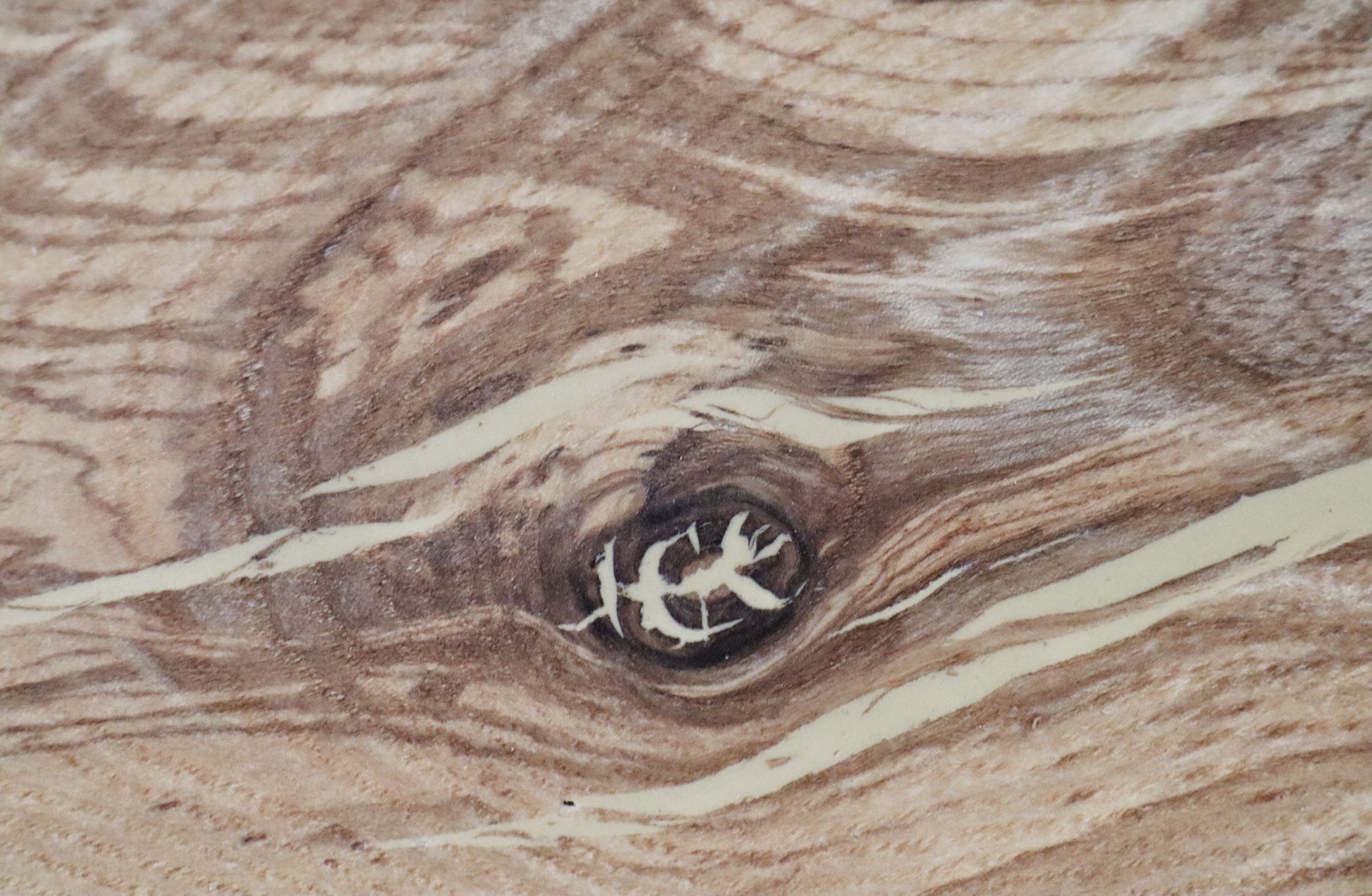 Eigentlich, unter den Maßstäben industrieller Fertigung betrachtet, hätte dieses Werkstück nicht mehr verarbeitet werden können, da es große Kerben und eine Faulstelle aufwies. Aber wir finden, dass genau diese Eigenschaften perfekt dafür geeignet sind, ein charakterstarkes und einzigartiges Möbelstück daraus zu fertigen.