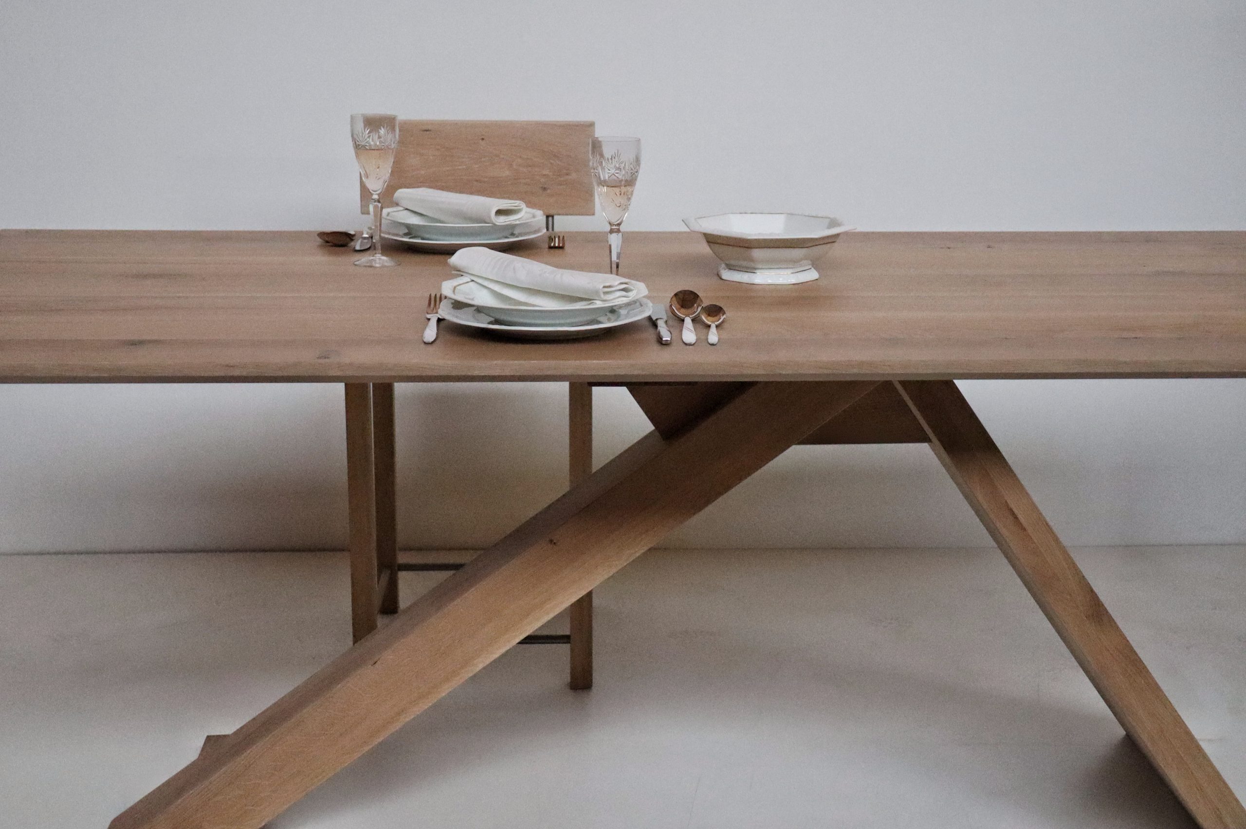 Nachhaltig, robust, regional und individuell – dieser Tisch verkörpert unsere handwerkliche Philosophie in Gänze.